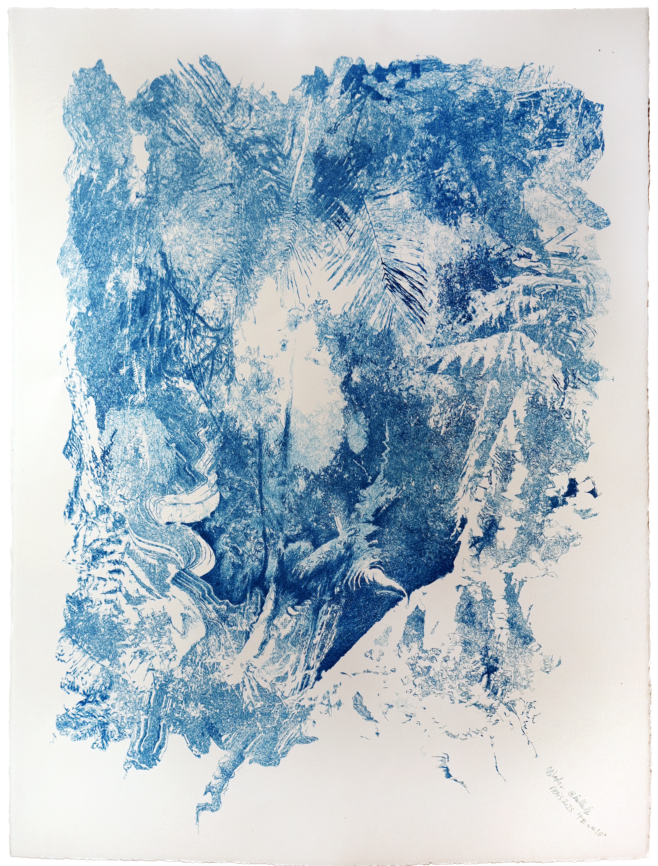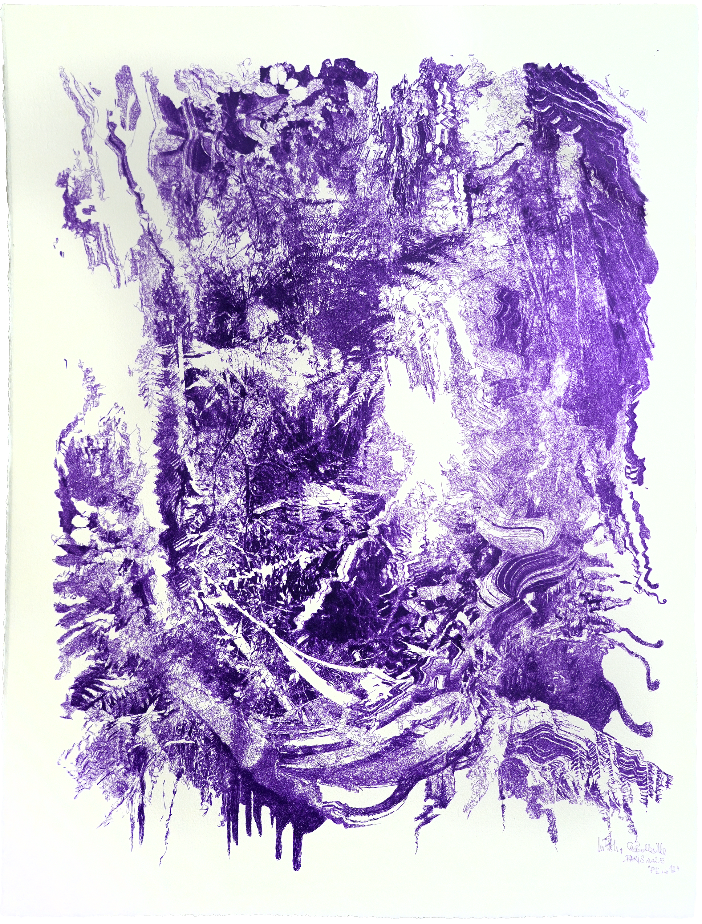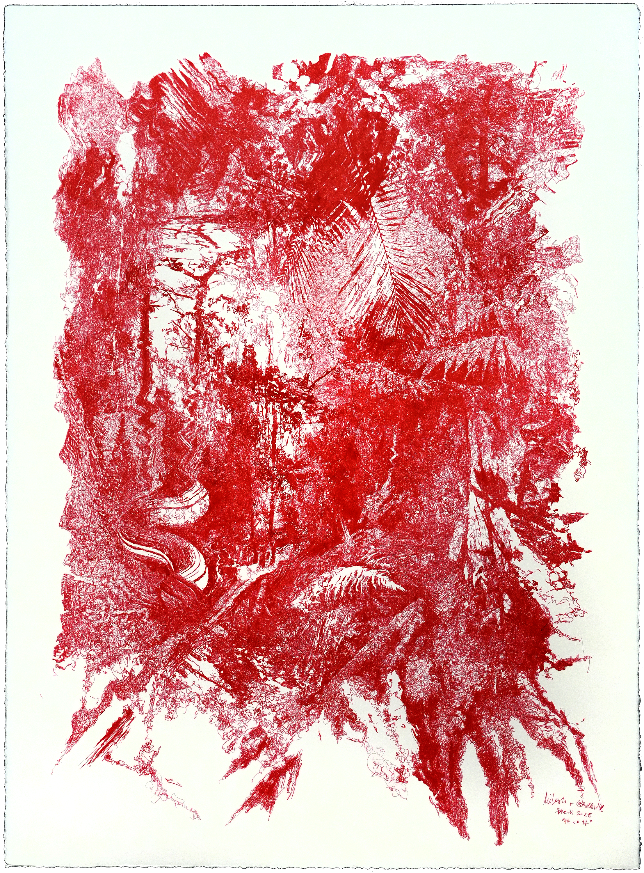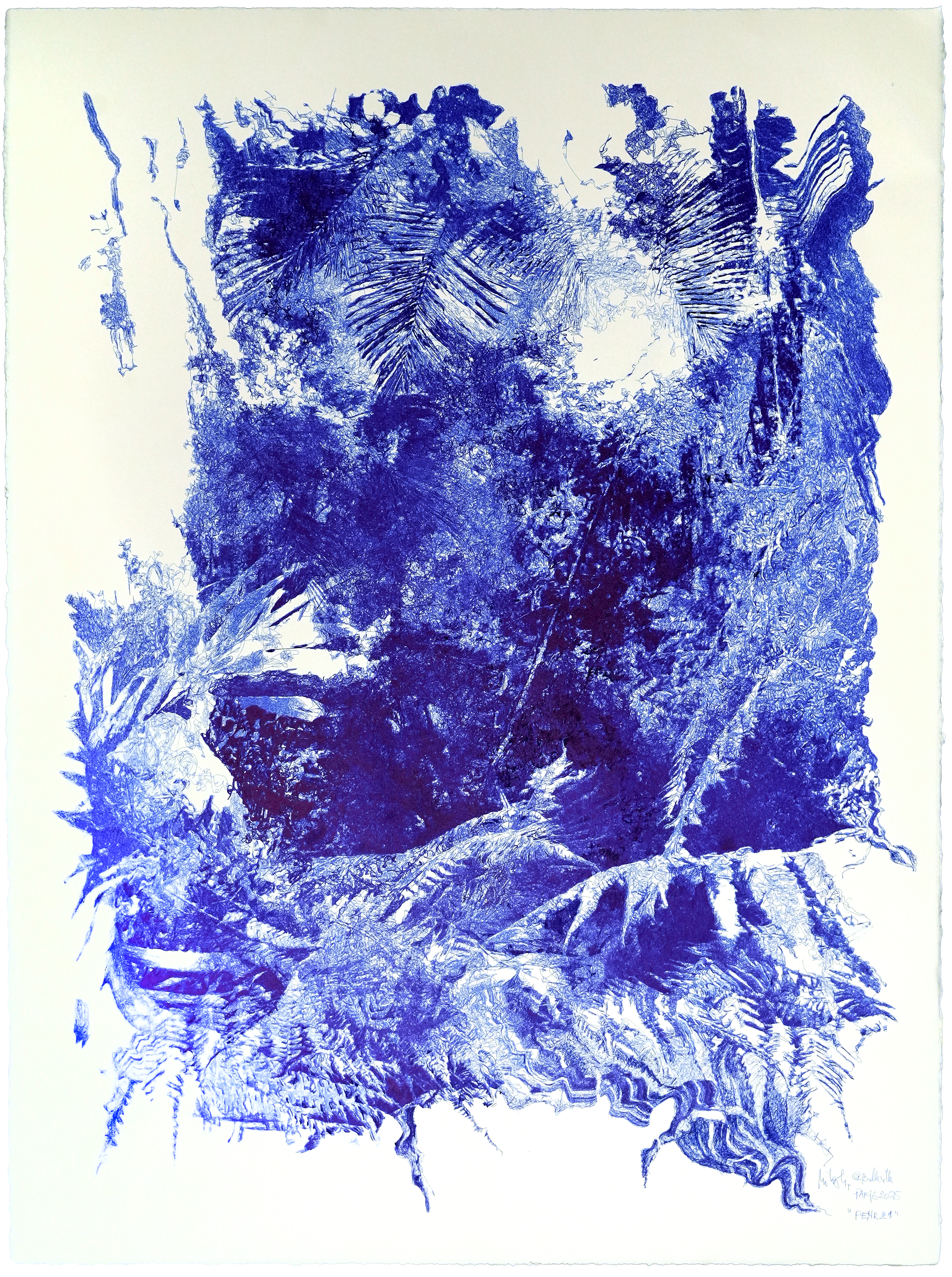 série “PROTOCOLES EVOLUTIONNAIRES”, stylos-bille à encre pigmentaire bio-gel sur papier aquarelle, 56 × 76 cm