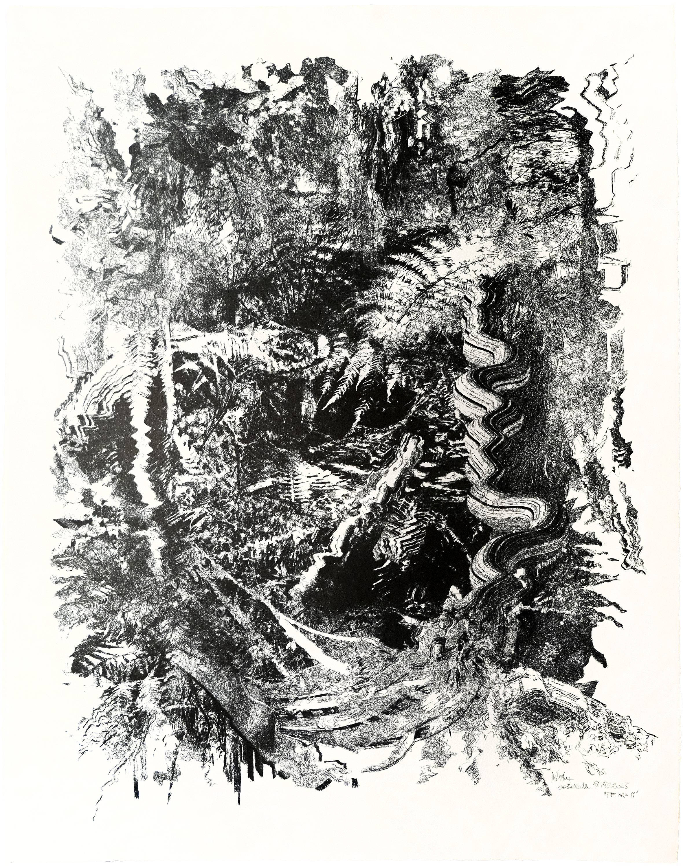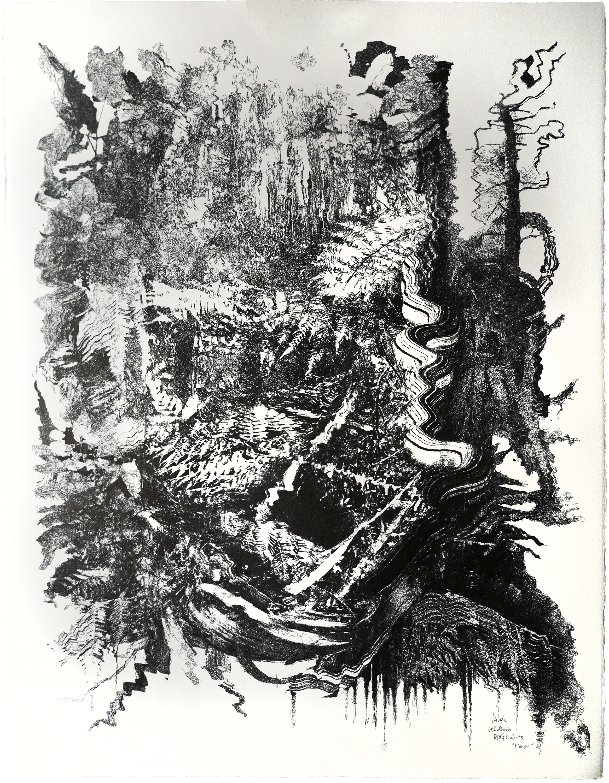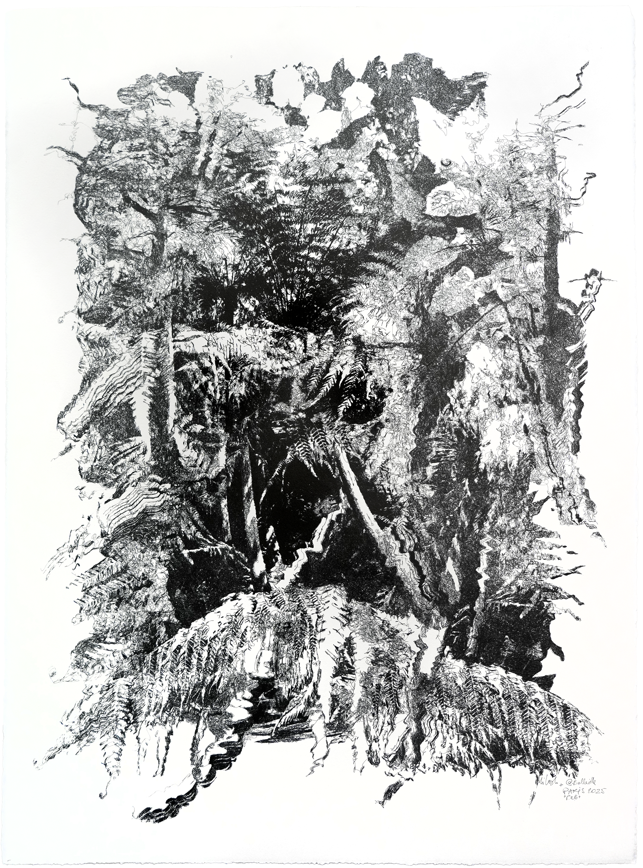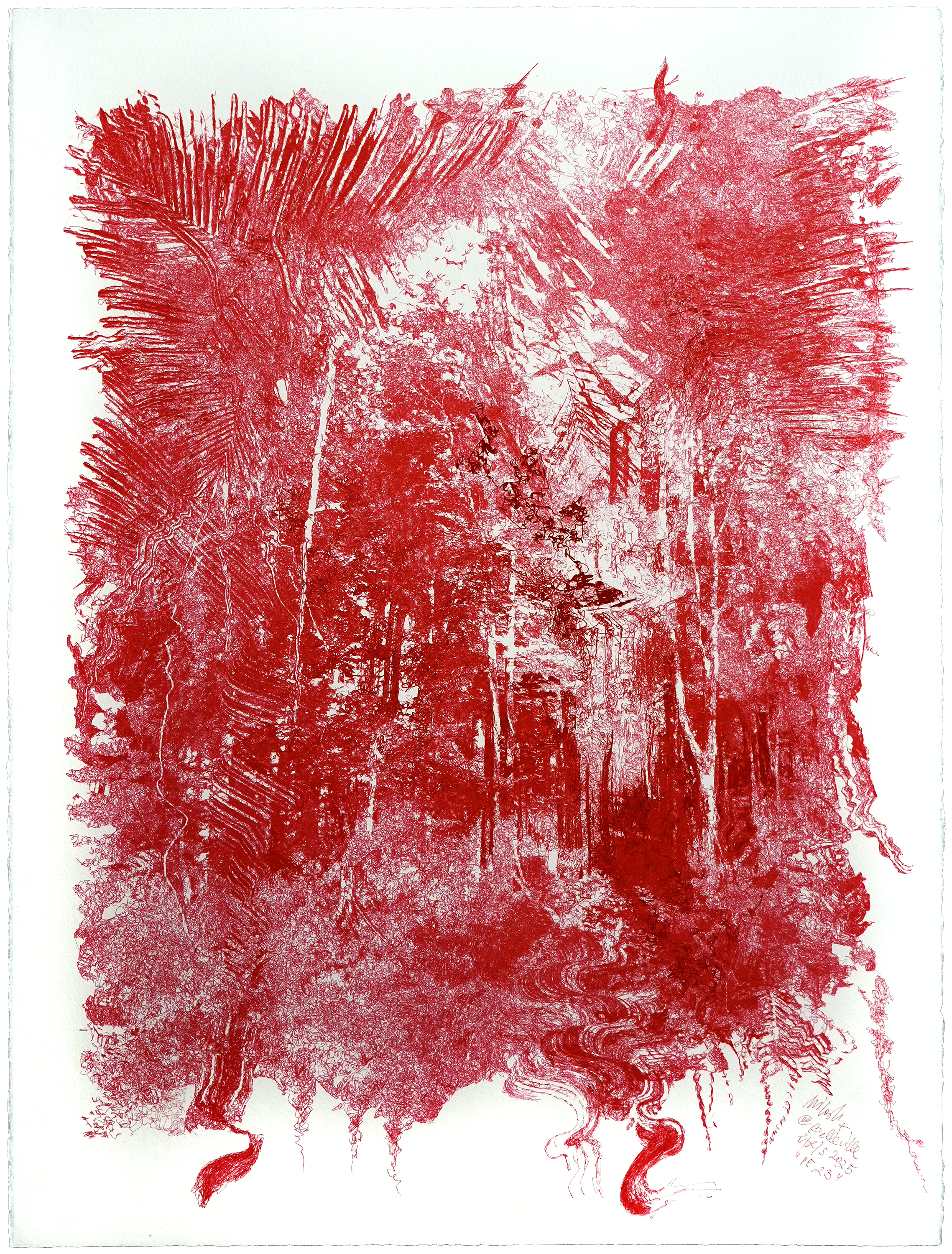 série “PROTOCOLES EVOLUTIONNAIRES”, stylos-bille à encre pigmentaire bio-gel sur papier aquarelle, 56 × 76 cm
