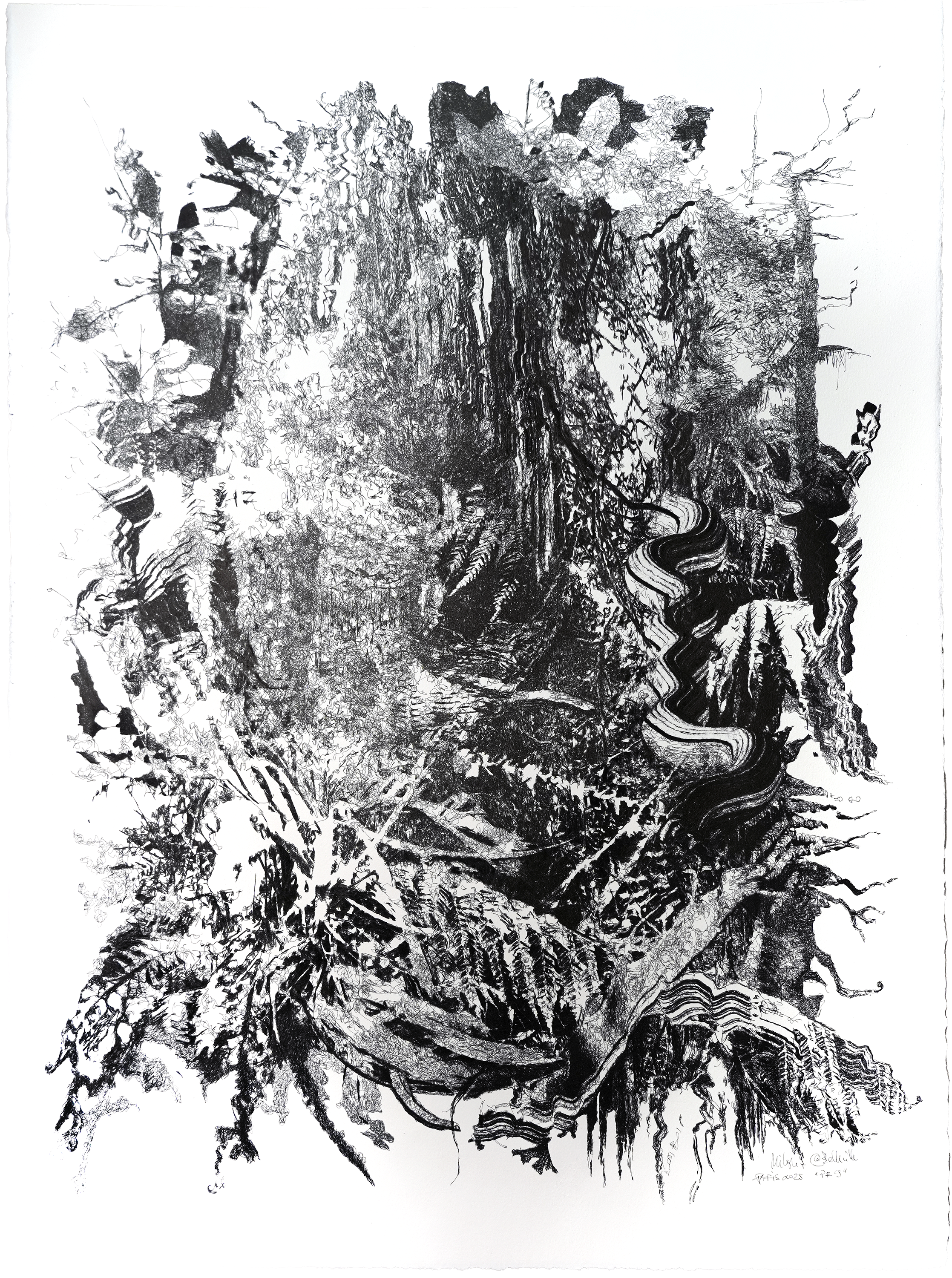 Milosh Luczynski utilise des prises de vues à la caméra VR comme matière première pour ses œuvres. Après de nombreuses transformations, elles sont fragmentées et tissées entre elles pour former de nouveaux paysages fabriqués dans un travail à quatre mains qui réunit la main de l’artiste et celle d’une machine. Ces images composées de samples visuels fonctionnent comme une transposition picturale des performances vidéo de l’artiste, où les variations et les répétitions déployées frénétiquement au fil des toiles génèrent une transe où l’intellect cède au sensoriel. Incorporant dans son processus créatif les nouvelles technologies sans perdre son sens critique vis-à-vis de celles-ci, Milosh Luczynski se rapproche d’une démarche transhumaniste, appartenant au post-humanisme. Son œuvre devient une exploration de l’infini et de l’atemporalité, un continuum à la fois numérique et organique, artificiel et vivant.